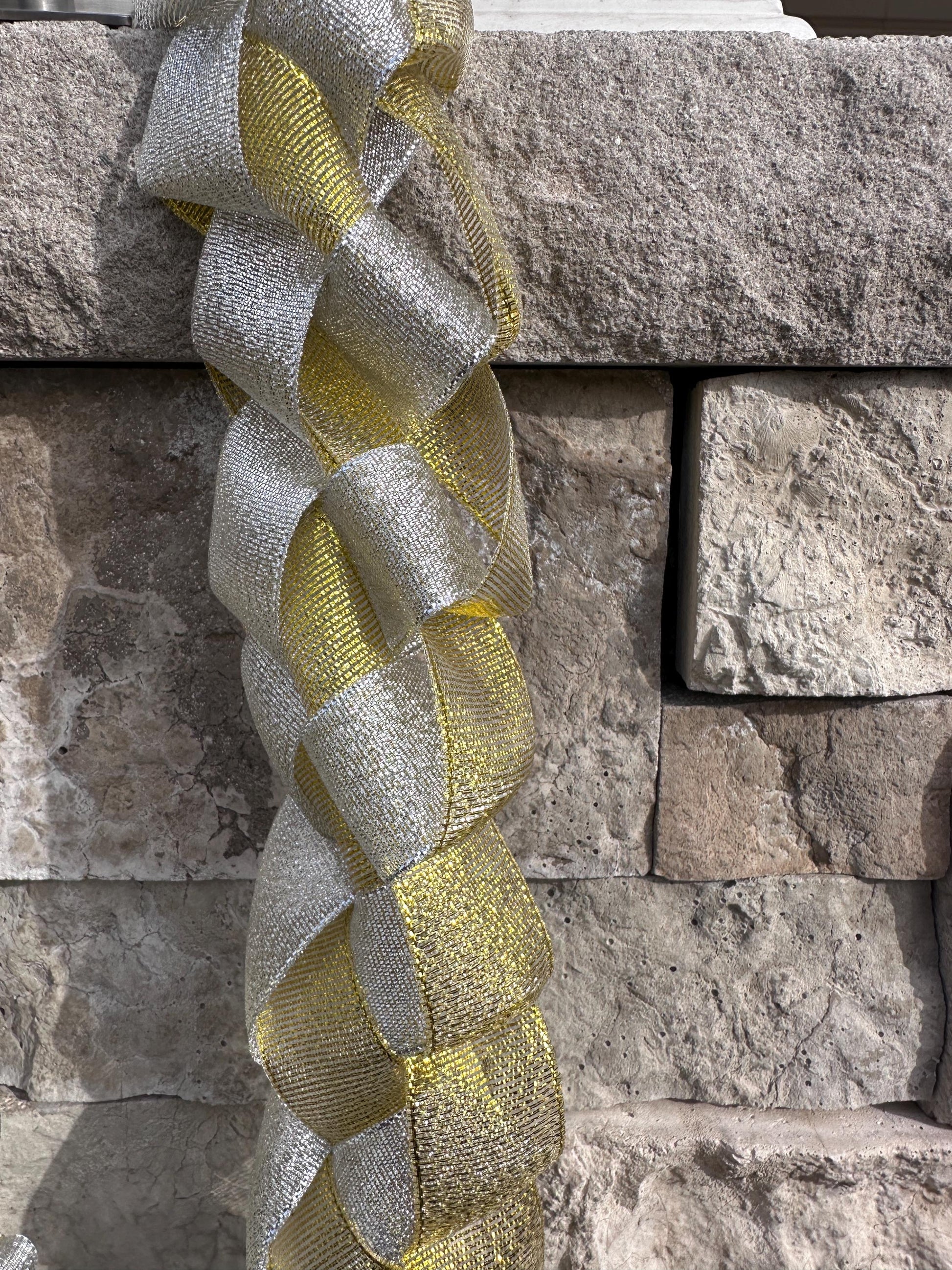 This beautiful Graduation Lei is handcrafted with care using two colors of high-quality 1-inch Glitter Metallic ribbon to make a stunning 60-inch braided Lei.