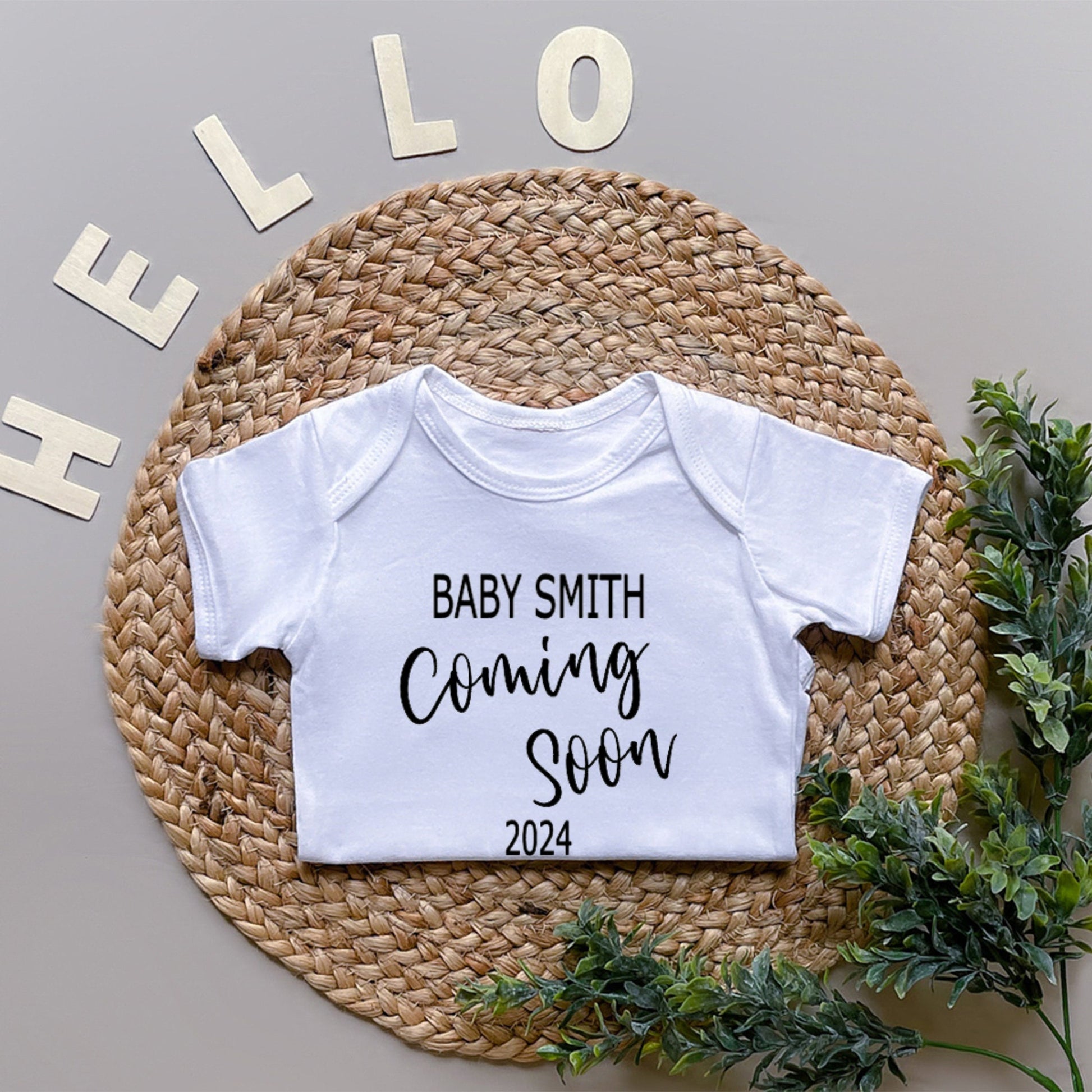 Personalized Coming soon 2025 Pregnancy announcement Bodysuit, Baby reveal Bodysuit