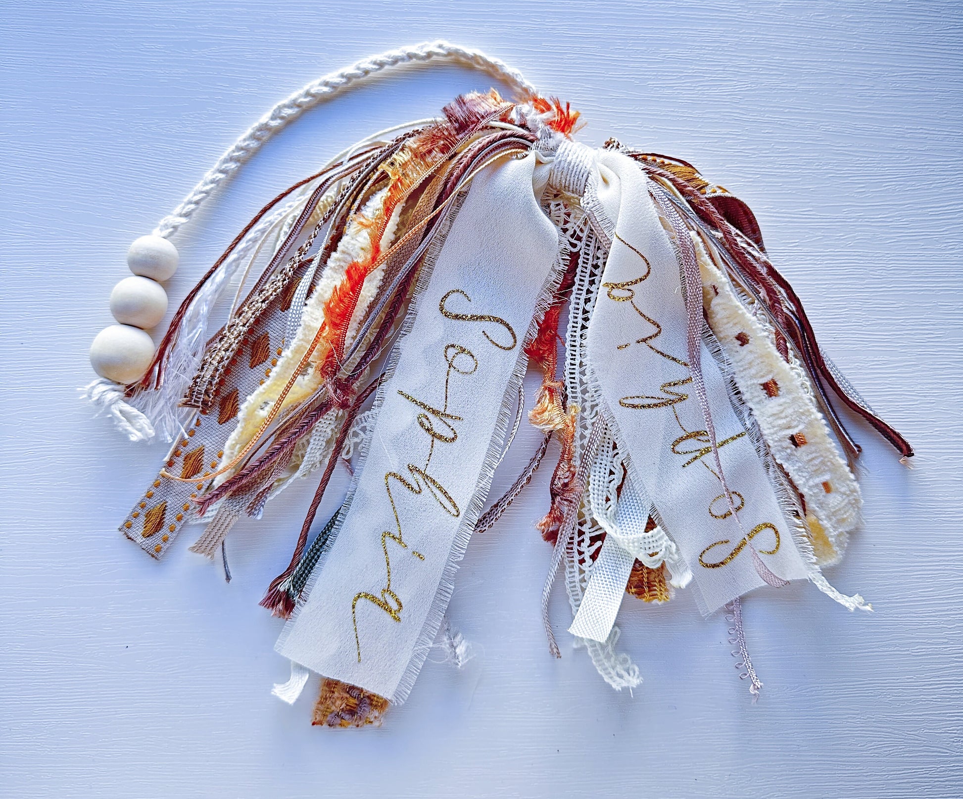 Please add the name or last name in the personalization box. ( Tassel will have available 2 chiffon ribbons to add the name twice, or name and last name.)