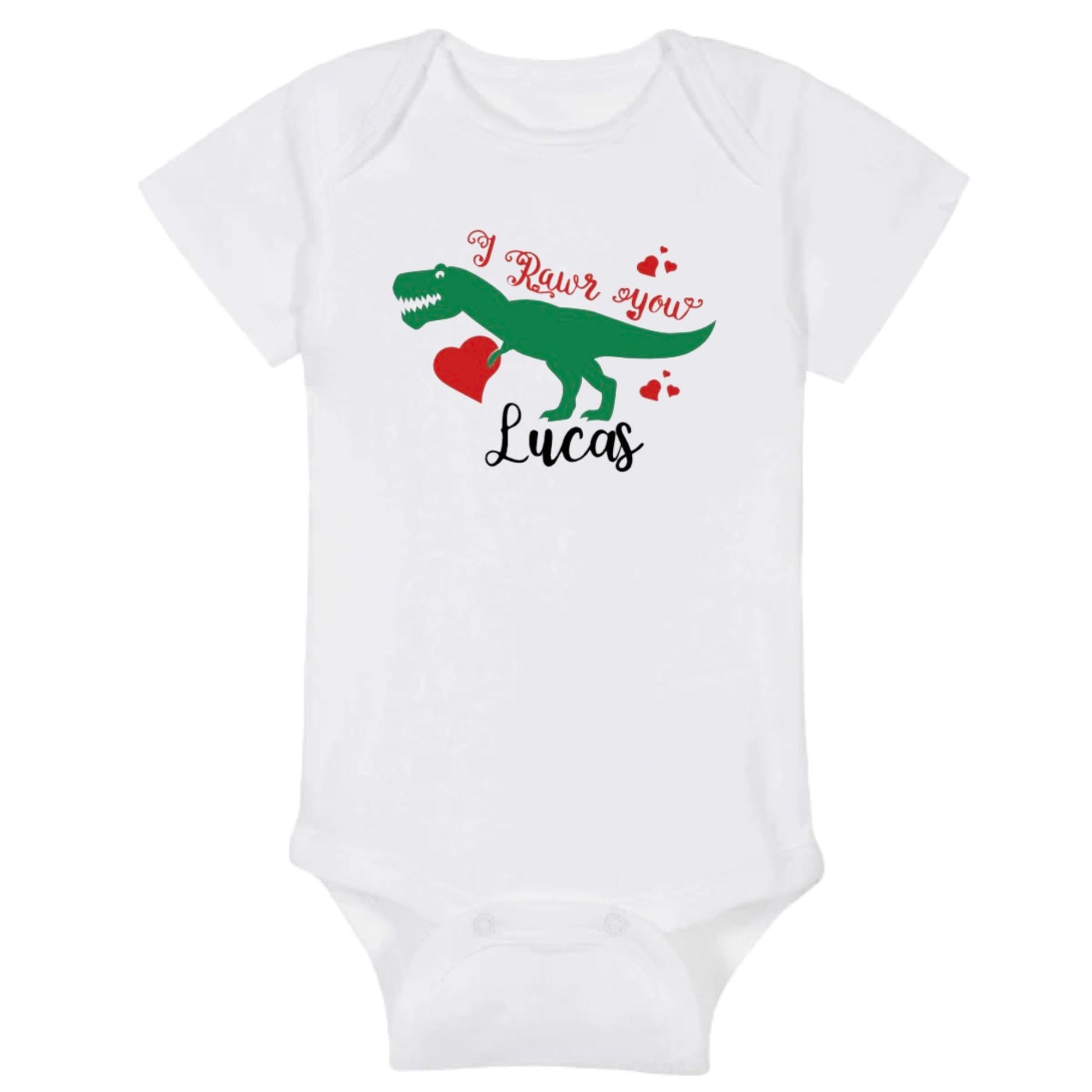Valentine's Dinosaur shirt is available in many sizes including preemie, newborn, toddler, and youth.