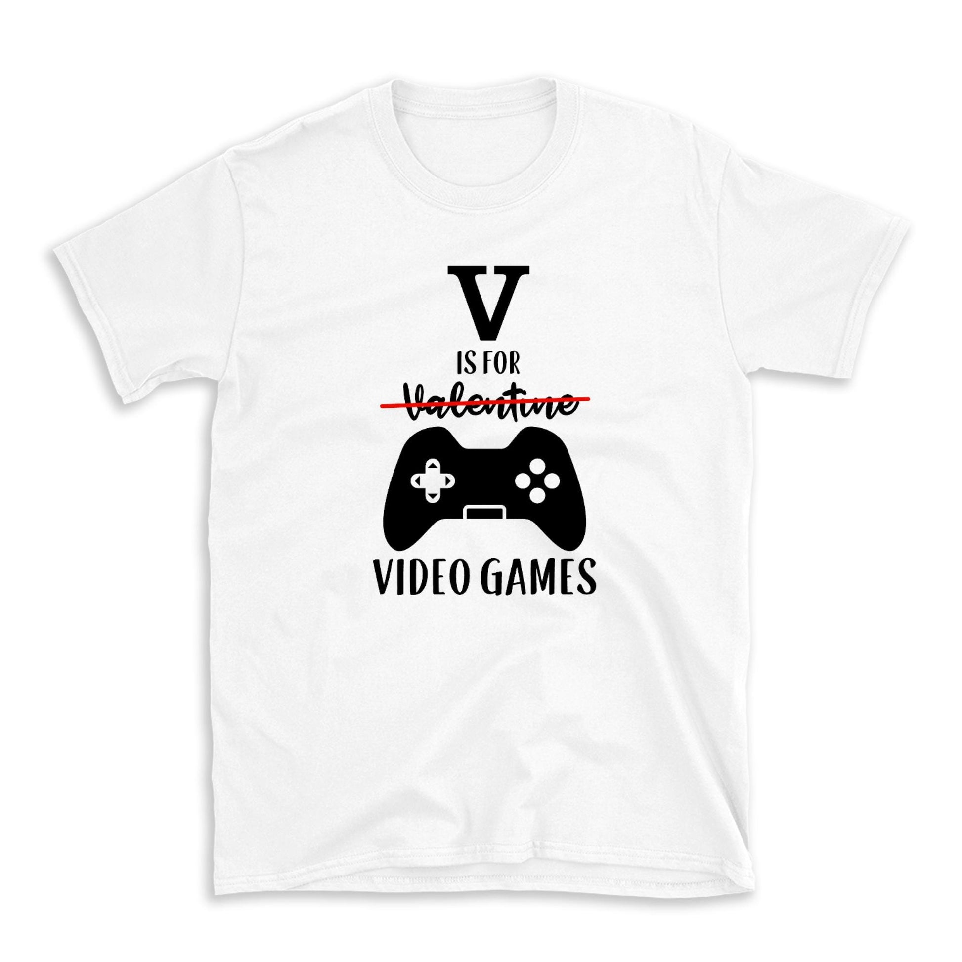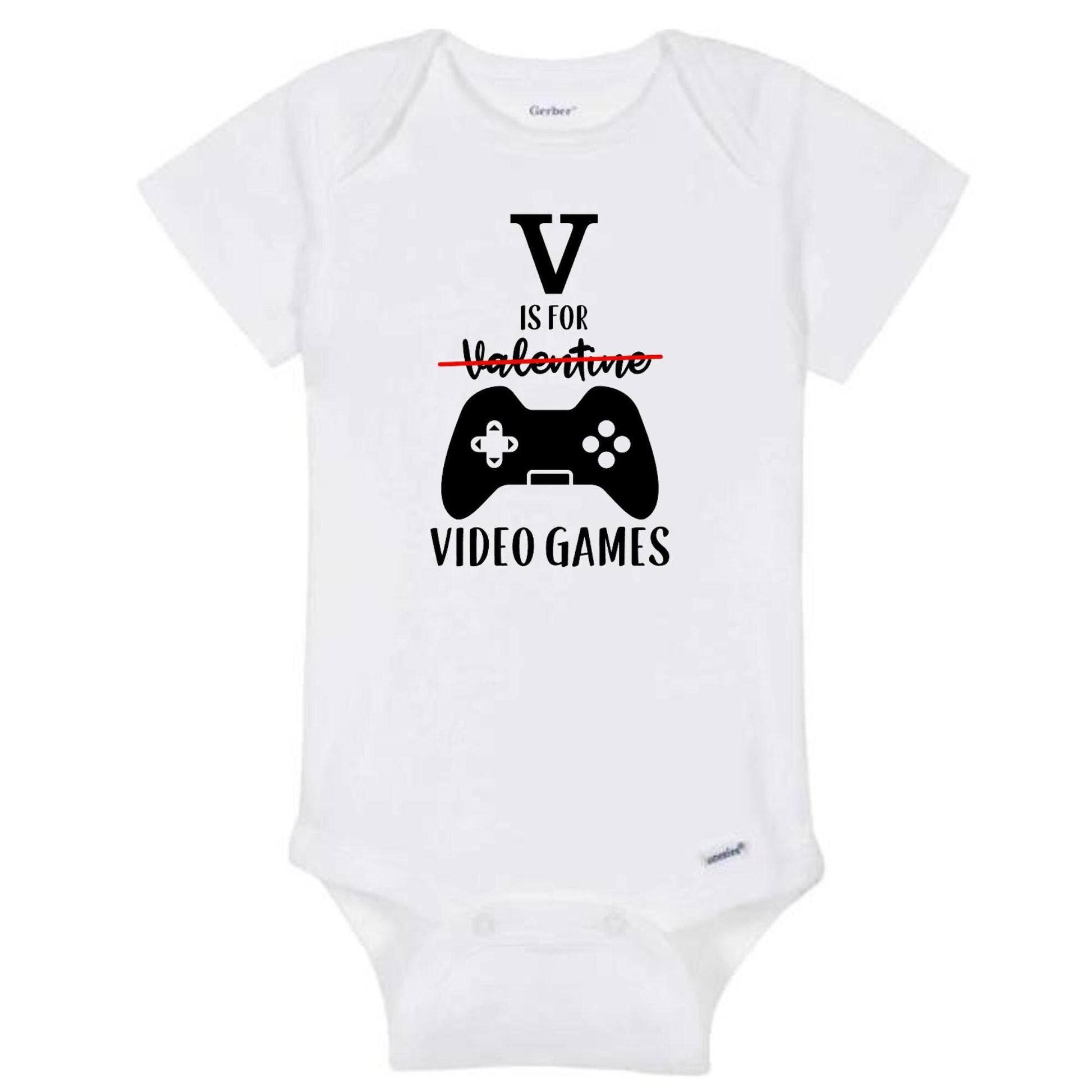 Valentine's V is for Video Games shirt is available in many sizes including preemie, newborn, toddler, and youth.